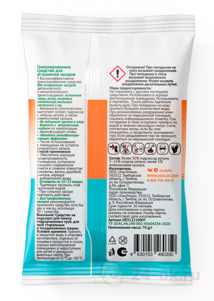 Udalix Гранулированное средство для устранения сложных засоров антибактериальное, саше 70 г