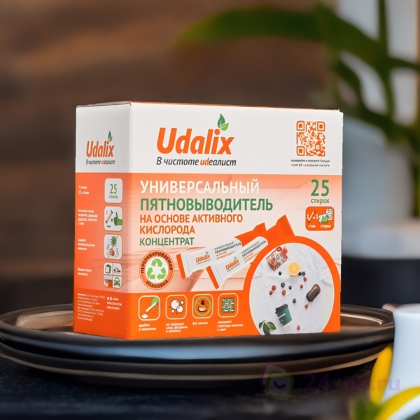 • Концентрированный* пятновыводитель Udalix Oxy Ultra эффективное средство против пятен с широким спектром применения.