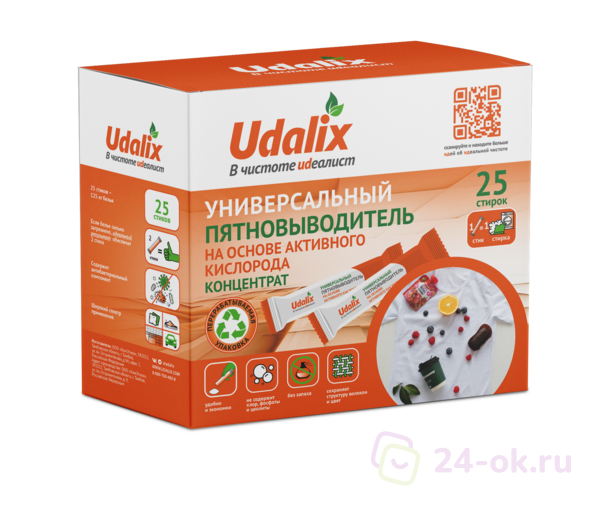 Udalix Пятновыводитель Oxy Ultra на основе активного кислорода (в стиках), гипоаллергенный, экологичный, 25 стиков