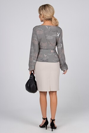 Цвет: хаки, Ткань: 95% полиэстер; 5% эластан ОПИСАНИЕ Элегантная блузка приталенного силуэта из лёгкой ткани Ниагара. Округлая горловина на внутренней обтачке. Длинный втачной рукав присобран на эластичную резинку. Модель дополняет притачной пояс, который можно повязать в элегантный бант и подчеркнуть линию талии. Низ ровный, без разрезов. Блузка представлена с юбкой Элеонора 55 см №5 Рекомендуемая стирка при t не более 30°. Длина изделия: 42, 44, 46, 48 р - 57 см; 50 р - 58 см Длина рукава: 42, 44, 46, 48 р - 62 см; 50 р - 63 см Рост фотомодели: 168 см Размер фотомодели: 42 Ткань: Ниагара