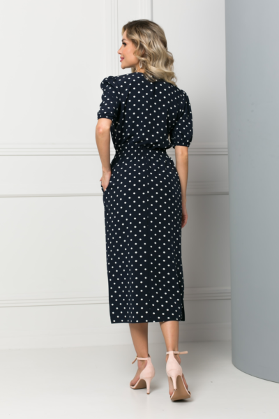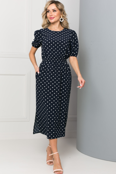 Цвет: черный, Ткань: 95% полиэстер; 5% эластан ОПИСАНИЕ Красивое платье приталенного силуэта добавит Вашему образу женственности и шарма. Округлая горловина на внутренней обтачке с застежкой по спинке на петлю и пуговицу. Короткий втачной рукав - фонарик присборен на эластичную резинку. Модель отрезная по линии талии. В боковых швах функциональные карманы. По талии проложена эластичная резинка в несколько рядов, что дополнительно подчеркнет Ваш силуэт. Низ ровный, по бокам разрезы. Рекомендуемая стирка при t не более 30°. Длина изделия: 117 см Длина рукава: 28 см Рост фотомодели: 168 см Размер фотомодели: 42 Ткань: Ниагара