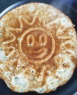 Дизайн корпуса сковороды разработан так, чтобы при выпекании не нарушалась целостность блина, и красиво румянился рисунок.