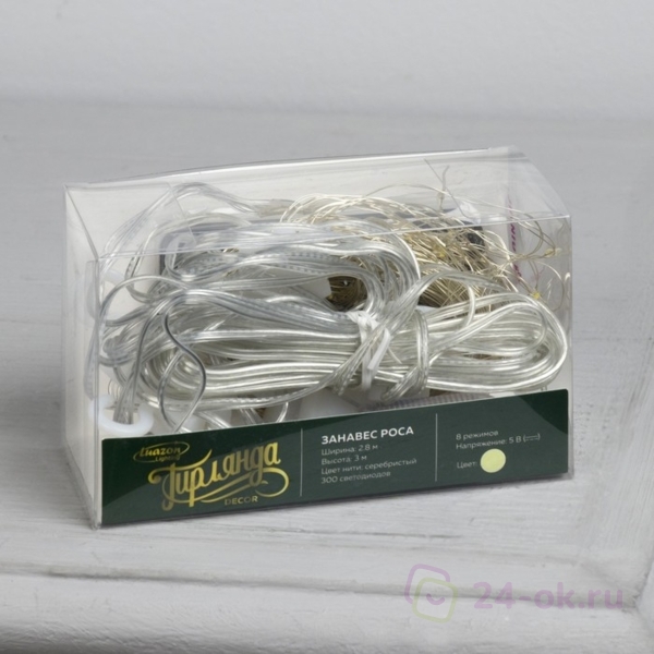 Все гирлянды идут на гибкой серебристой проволоке , не путать с гирляндой шторой на проводах. Длина гирлянды -3м, ширина -2,8. Каждая гирлянда с отдельным пультом управления, есть 8 режимов подсветки (самый красивый мерцание и постоянный свет, но тут, как говорится, на любителя)). У гирлянд 300 LED ламп, есть меньше, смотрится не так эффектно, смотрите внимательно при заказе. Да, отдельный плюс: каждая гирлянда на крючках, очень удобно, если вешаете на шторы и окна. Лично я крепила на стену и елку, поэтому крючки сняла, иначе заметно.