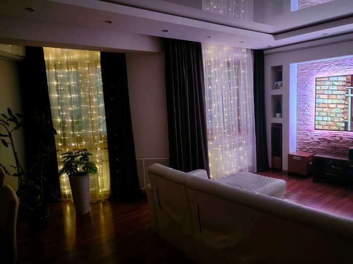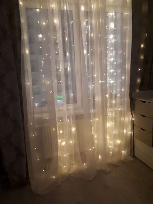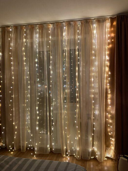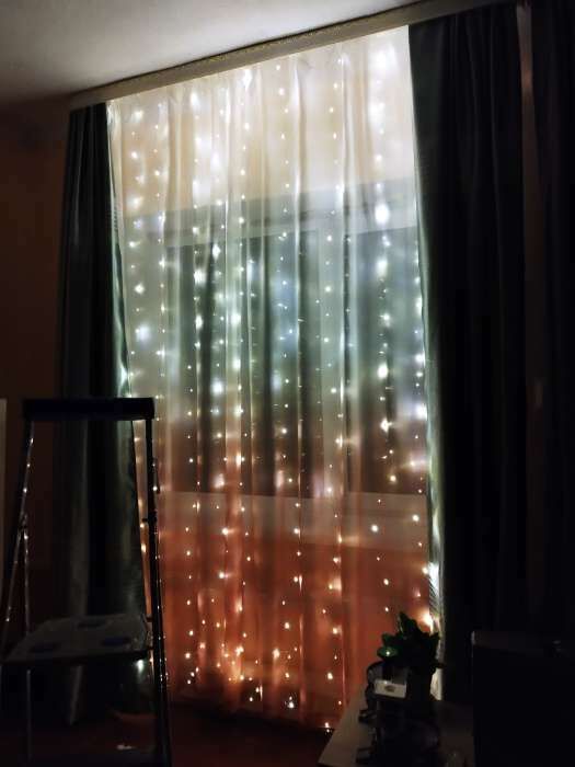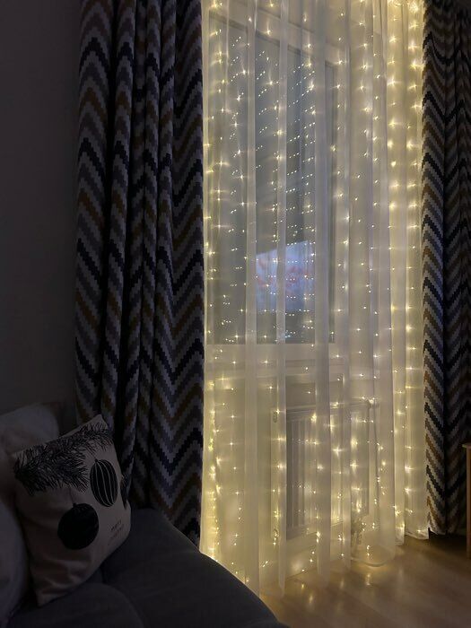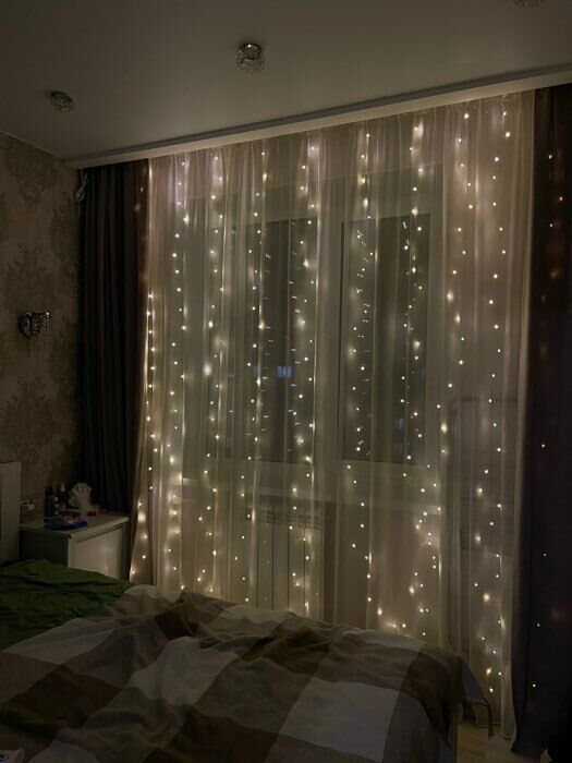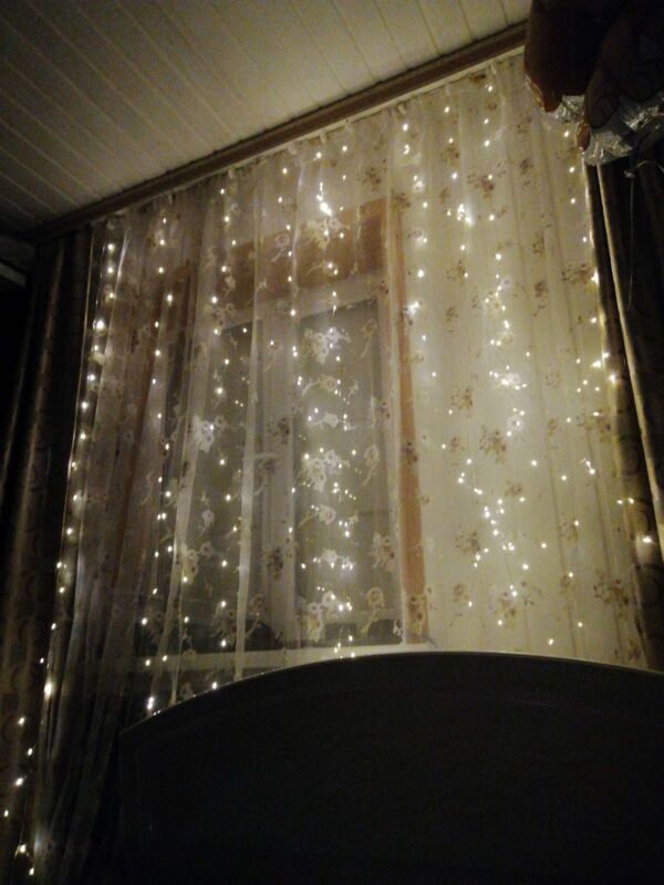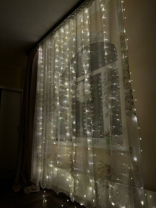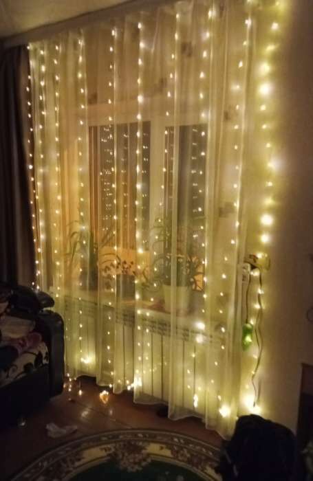 - Очень красивая гирлянда - занавес, даже лучше, чем с разноцветными огоньками. Комната преображается мгновенно, становится уютной и скпзочной. Даже мужу нравится, при том, что он редко высказывается о такого рода товарах🤭.