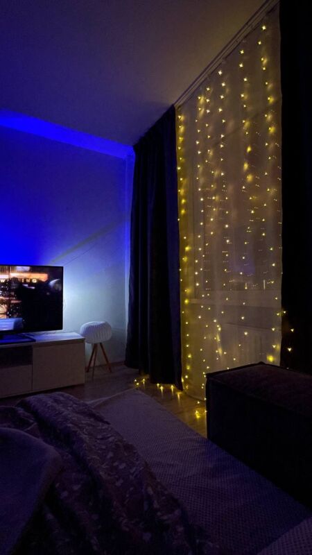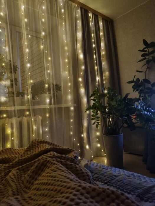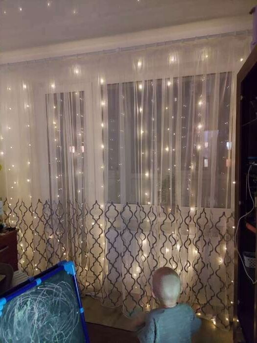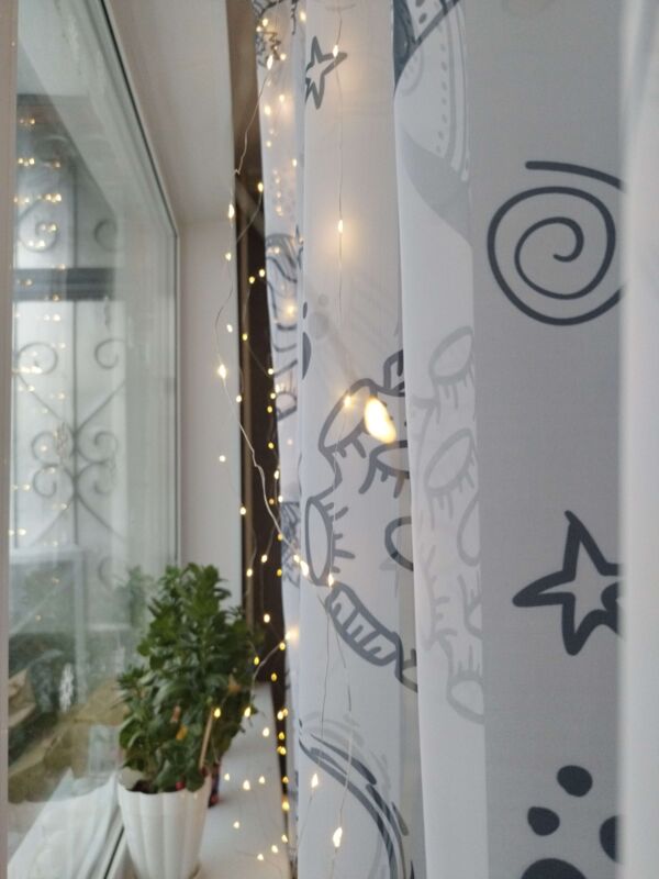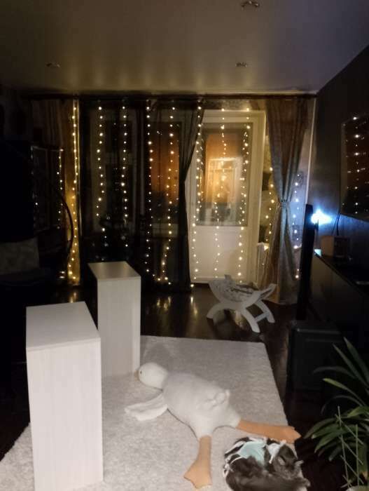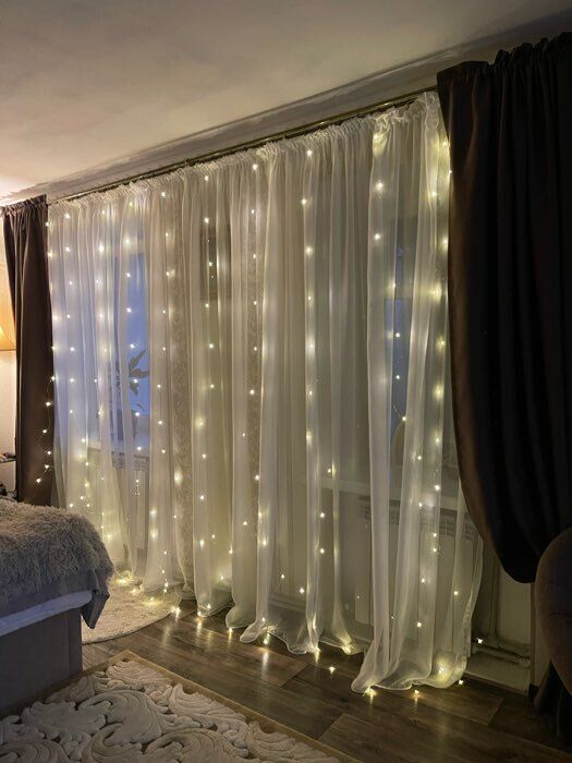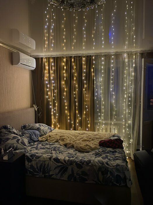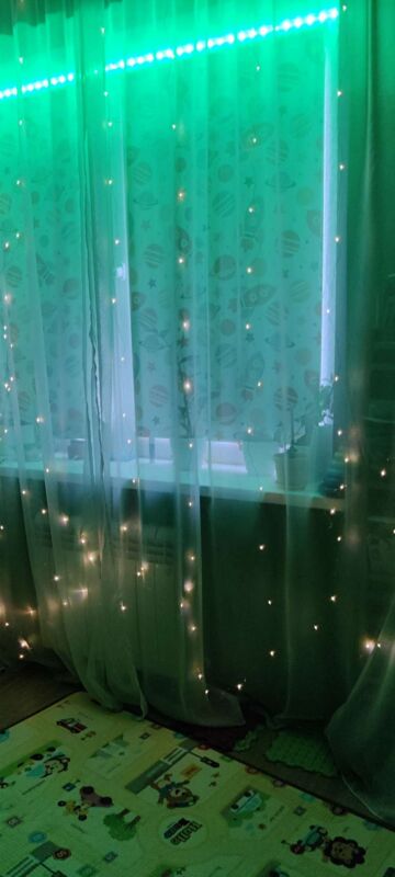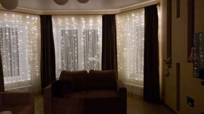 - Очень красивая гирлянда - занавес, даже лучше, чем с разноцветными огоньками. Комната преображается мгновенно, становится уютной и скпзочной. Даже мужу нравится, при том, что он редко высказывается о такого рода товарах🤭.