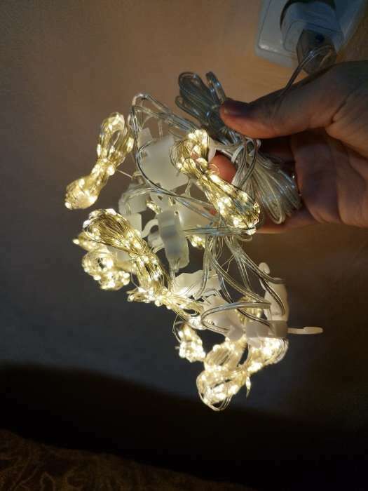 - Гирлянда вообще топ👍 самая лучшая покупка в моей жизни🤣. Горит просто бомбезно, есть пульт переключать режимы. Нити проволочки тонкие, едва заметные и красивые). За 23 белорусских рубля вообще отлично! Однозначно покупайте!!