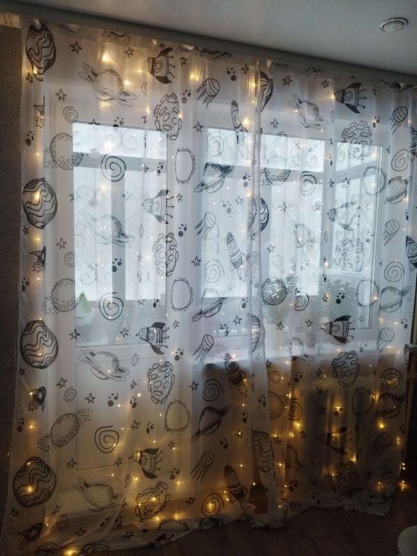 - Заказывали штору гирлянда, красиво, нежно, удобно😊 есть пульт. Очень довольны 👍 покупкой.