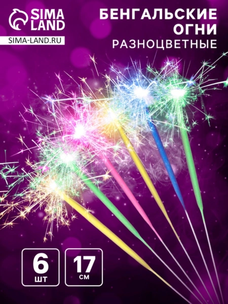 Цена за 2 шт. Бенгальские огни разноцветные «Спектр», 6 шт., 17 см, горение 30 сек.