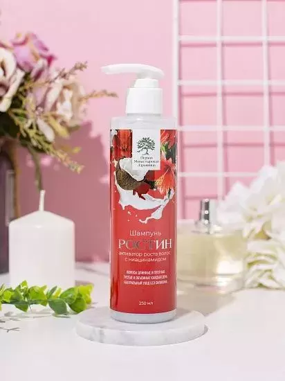 Комплексный уход для волос "Ростин" состоит из 3 продуктов: шампунь-активатор роста, бальзам-экстракт с кератином и протеинами шелка, и маску с ниацинамидом и фитостеролами для корней и длины волос.