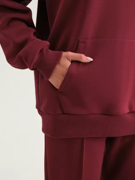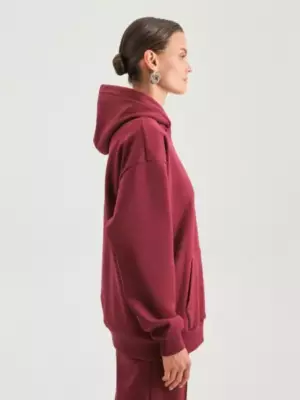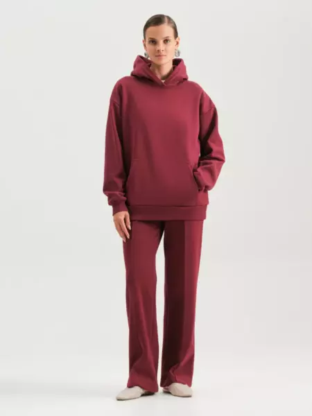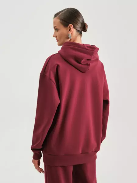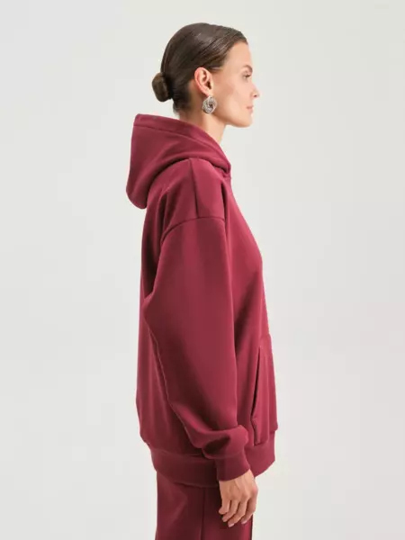 100% хлопок Женское худи насыщенного бордового оттенка — комфортный и стильный элемент повседневного гардероба. Модель свободного кроя с заниженной линией плеча создаёт расслабленный силуэт и не сковывает движения. Глубокий капюшон и вместительный карман-кенгуру добавляют удобства и делают изделие особенно практичным в прохладную погоду. Изделие выполнено из плотного хлопкового трикотажа без добавок, что обеспечивает максимальный комфорт, воздухопроницаемость и мягкость к телу. Эластичные манжеты и широкая резинка по нижнему краю надёжно фиксируют посадку и сохраняют форму после стирок. Подходит для создания образов в стиле casual и athleisure — сочетается как с джоггерами, так и с классическими пальто. Женское худи насыщенного бордового оттенка — комфортный и стильный элемент повседневного гардероба. Модель свободного кроя с заниженной линией плеча создаёт расслабленный силуэт и не сковывает движения. Глубокий капюшон и вместительный карман-кенгуру добавляют удобства и делают изделие особенно практичным в прохладную погоду. Изделие выполнено из плотного хлопкового трикотажа без добавок, что обеспечивает максимальный комфорт, воздухопроницаемость и мягкость к телу. Эластичные манжеты и широкая резинка по нижнему краю надёжно фиксируют посадку и сохраняют форму после стирок. Подходит для создания образов в стиле casual и athleisure — сочетается как с джоггерами, так и с классическими пальто.