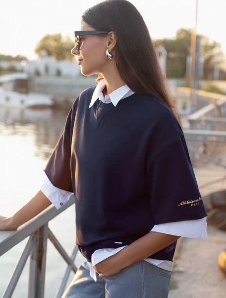 Футболка из футера двухнитки. D49.081 - т.синий_athleisure_mood