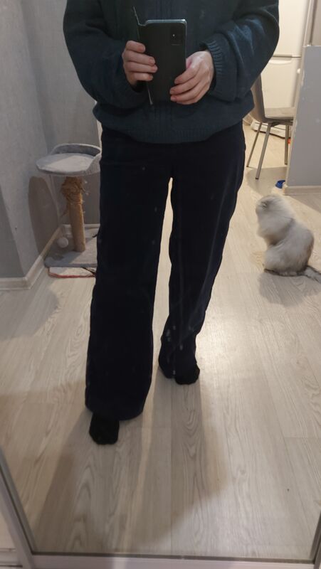 Брюки свободного кроя «трубы» выполнены из мягкого хлопкового микро-вельвета с добавлением эластана. Изделие комфортно садится по фигуре и не сковывает движения. Модель с пятью карманами, как у джинсов дополнена высококачественной фурнитурой с фирменным логотипом бренда. Идеально впишутся в повседневный образ, со свитером крупной вязки, курткой-косухой, ботинками на грубой подошве, челси и казаками.