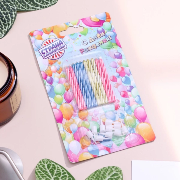 Цена за 8 шт. Свечи для торта «Спираль», незадуваемые, 10 шт., 10 подставок
