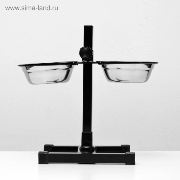 Подставка с мисками, 2×350 мл, высота 30 см, разборная, чёрная