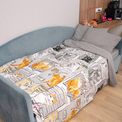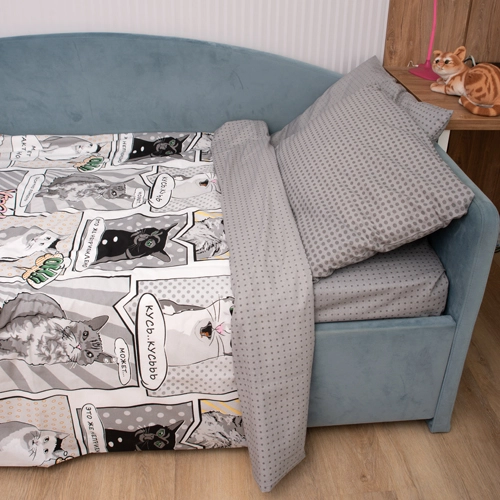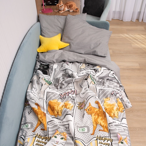 КПБ 1,5 спальный с 1 нав.50*70, поплин,Коты мемы