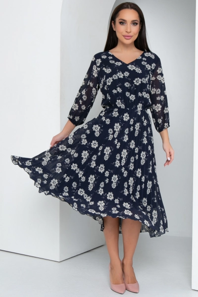 Сияйте вместе с Diolche! Представляем шикарное платье из легкого воздушного шифона с юбкой гофре. Актуальный цветочный принт подойдет женщинам и девушкам любого возраста. Свободный фасон позволит чувствовать себя комфортно в течении дня. Шифоновое платье модной длины миди отлично сядет на любую фигуру, зрительно стройнит и вытягивает силуэт. Платье имеет идеальную посадку благодаря индивидуальной корректировки длины за счет мягкой комфортной резинки на талии. Рукав длиной 3/4 на резинке снизу, благодаря которой можно свободно регулировать высоту рукава. V - образный вырез горловины обтачен подкладом.