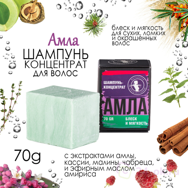 Шампунь "Амла" бережно очищает кожу головы, окрашенные или сухие и ломкие волосы. Придает блеск и мягкость.