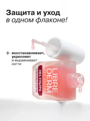 LIBREDERM NAIL CARE лак для ногтей 3 в 1 Ультра, Ультра-стволовые клетки 10 мл