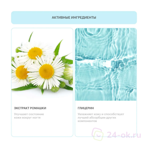 [+] Экстракт ромашки обеспечивает здоровое состояние кожи вокруг ногтя