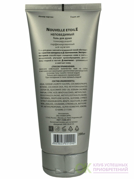 Мужской гель для душа от Новой Зари насыщенный парфюмированный и бодрящий гель для мужчин. Идеально смягчает, очищает и тонизирует кожу, придавая ей упругость, мягкость, свежесть и красоту.