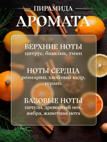 Композиция аромата невероятна по своему звучанию. В верхних нотах слышится его душа и решительный характер… Бодрящие цитрусовые аккорды, пряные ноты душистого базилика, звуки тмина с оттенками приятной горечи разжигают его темперамент, демонстрируют мужественность и спортивный дух.