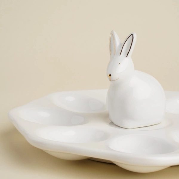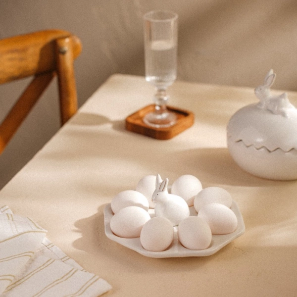 Эта элегантная подставка для яиц станет неотъемлемым элементом вашего праздничного стола. Изготовленная из керамики (доломита), она впечатляет своей изысканной простотой и надежностью. Гладкая текстура и белоснежный цвет подчеркнут утонченность вашей сервировки, добавив особую атмосферу на Пасху.