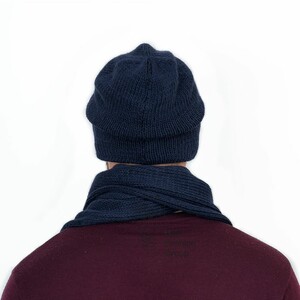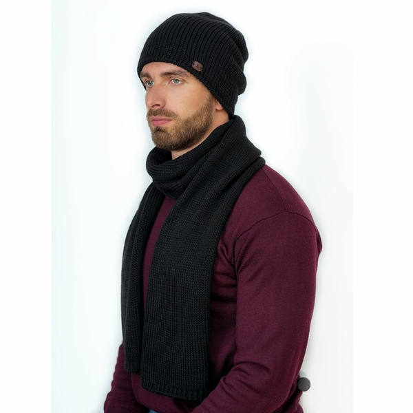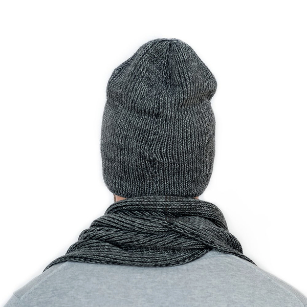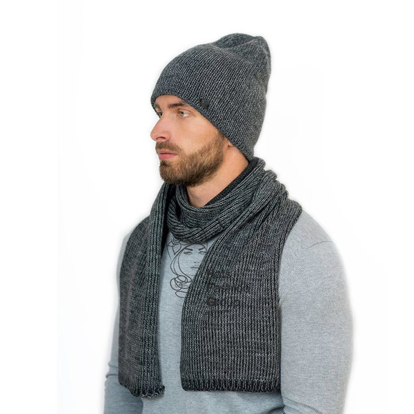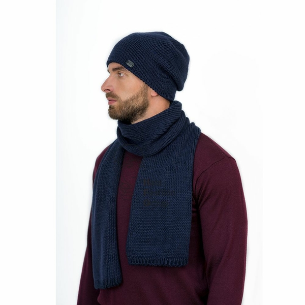 Теплая мужская удлиненная шапка-колпак из полушерстяной пряжи на флисе. Флисовая подкладка делает изделие комфортным в носке. Сбоку украшена фирменной кожаной шильдой.