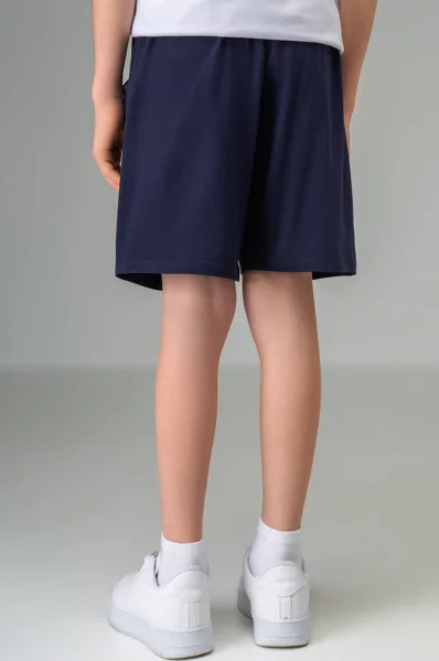 Темно-синие шорты выполнены из кулирной глади, состоящей на 100% из хлопка. Трикотажная ткань отличается превосходной мягкостью и воздухопроницаемостью, что делает ее идеальной для летнего и весеннего периода. Хлопок придает естественную терморегуляцию и приятные тактильные ощущения.