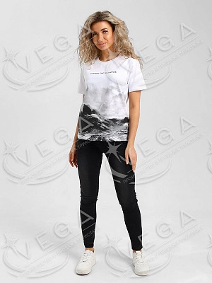 Футболка классического фасона, прямого кроя, с коротким рукавом и округлым вырезом. Декорирована принтом. Универсальная модель футболки отлично подойдет для любого образа и станет необходимой вещью в вашем гардеробе. Стильная женская футболка с принтом - отличный подарок на День рождения. Посадка свободная, футболку будет удобно носить навыпуск или заправлять, отлично сочетается с юбкой, брюками с джинсами, а также можно одеть под пиджак, жакет или кардиган. Футболка выполнена из мягкого хлопкового полотна средней плотности приятного к телу. Если предпочитаете более свободный крой, закажите на размер больше. Для Вашего удобства в одну карточку собраны футболки женские больших размеров и малых размеров. Футболка будет хорошо сидеть на женщинах и девушках с любым типом фигуры, в том числе беременных и кормящих мамах. Стирать футболку с вещами похожего цвета и вынимать сразу после стирки. Гладить с изнаночной стороны.
