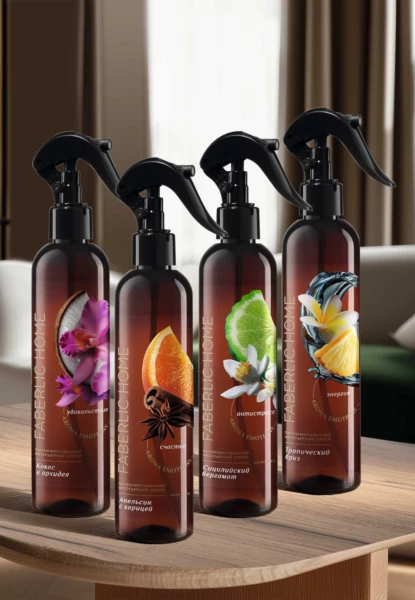 Парфюмированный интерьерный спрей создает атмосферу, дарит красивый аромат и пролонгированную свежесть, пробуждает приятные эмоции благодаря особой парфюмерной композиции в сердце акваформулы.