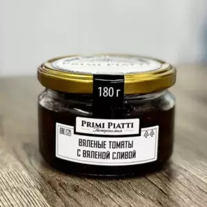 Вяленые томаты с вяленой сливой Primi Piatti — это консервированный продукт, который содержит томаты, вяленые на солнце, красную вяленую сливу, высокоолеиновое и оливковое масло, чеснок, базилик, розмарин, тимьян, соль и сахар.