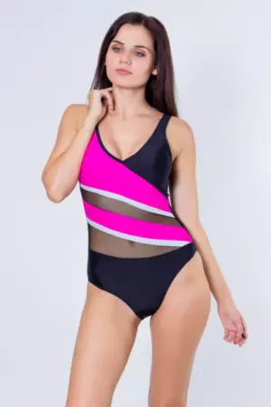 Купальник женский слитный фирмы Siman, со съемными поролоновыми чашками. Вставки из сетчатой ткани.