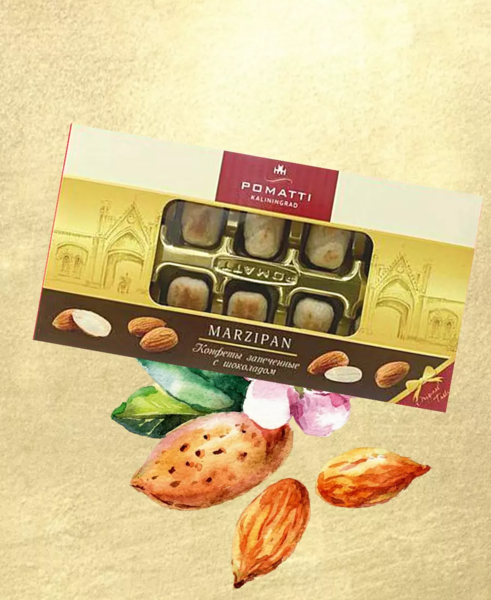Попробуйте уникальный вкус запеченного калининградского марципана! Изысканные конфеты, приготовленные по традиционному рецепту кенигсбергского марципана с повышенным содержанием миндаля (44%). Особый способ запекания создает хрустящую корочку снаружи и нежную текстуру внутри.