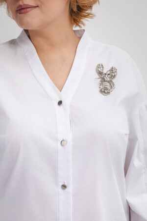 Блуза женская эффектная с брошью, белая, хлопковая AVERI