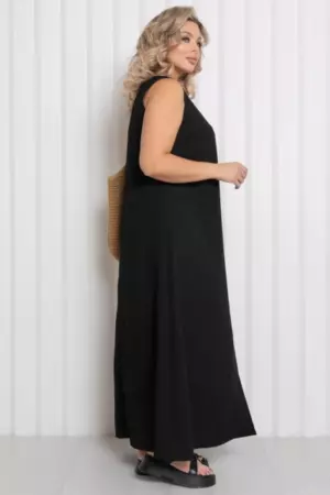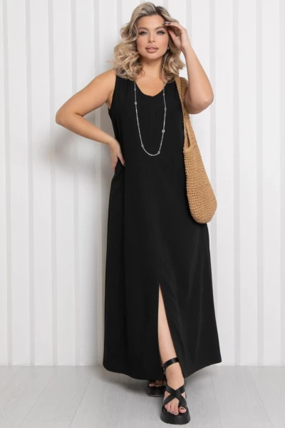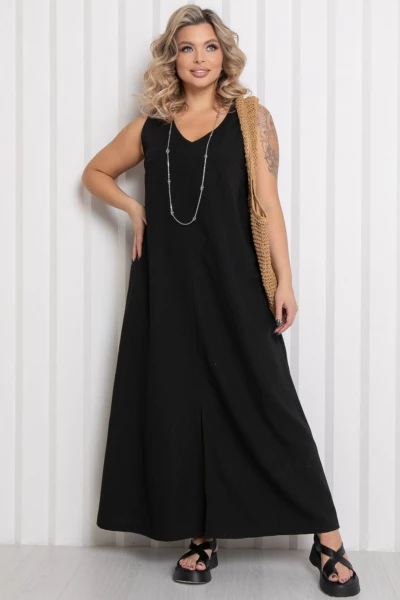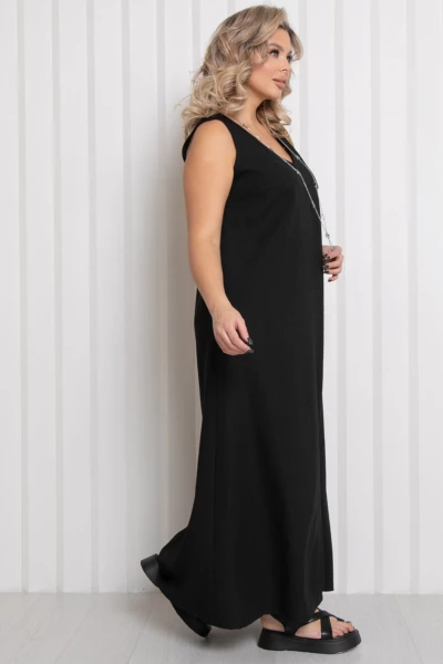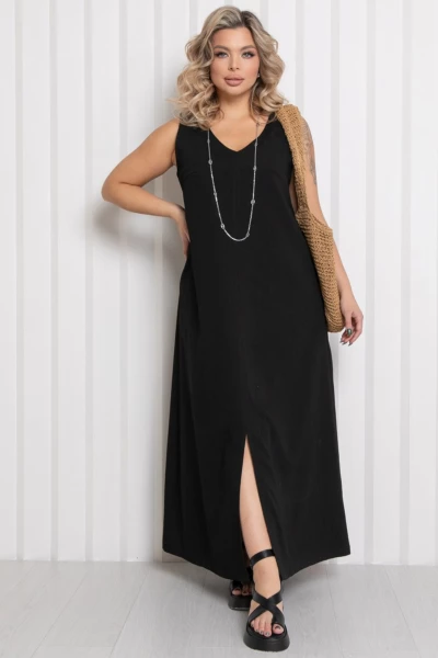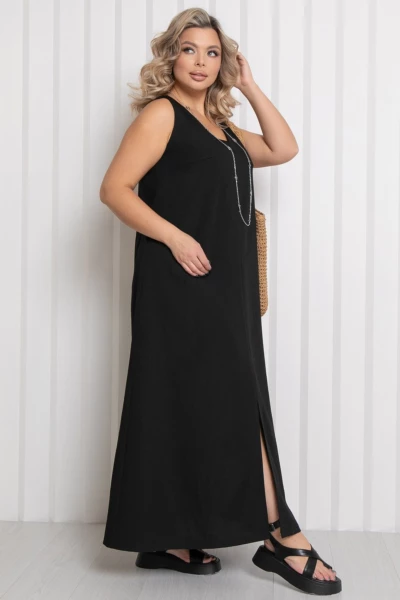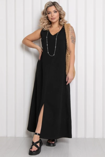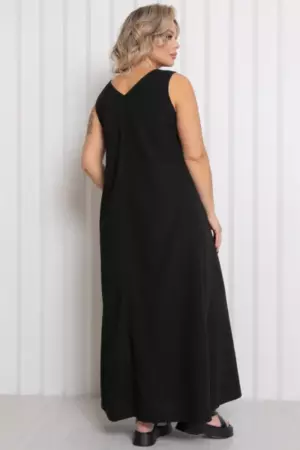 Сарафан А - силуэта из ткани с рельефной поверхностью. - V-образный вырез горловины - открытая пройма рукавов - спинка и перед со средним швом - низ ровный, с разрезом по переду. Длина изделия: от плеча до низа 143-144 см., Размер сарафана на фотомодели 52. Параметры модели на фото грудь 108 см, талия 89 см, бедра 116 см., рост 170 см. Состав: Ткань плательно-костюмная, состав вискоза 20%, полиэстер 75%, спандекс 5%. Легкая, но вместе с тем прочная гладкокрашеная ткань с рельефной поверхностью. Приятная и мягкая на ощупь. черный