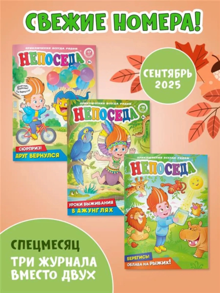 Комплект детского журнала НЕПОСЕДА из 3 номеров (№18, №19, №20) за осень 2025 года.