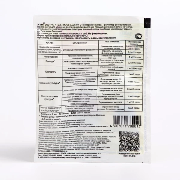 «Эпин-Экстра» — это регулятор роста растений и адаптоген широкого спектра действия, обладающий сильным антистрессовым эфеектом. Рекомендован к использованию при заморозках, избыточной влажности, наличии вредителей и болезней.