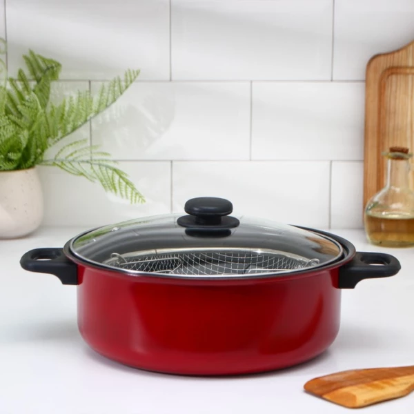 Кастрюля «Ренард», 4 л, с крышкой, сетка фри 26×9 см, антипригарное покрытие, углеродистая сталь, красная