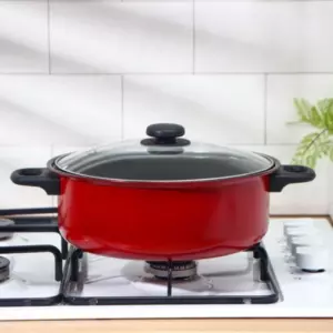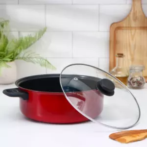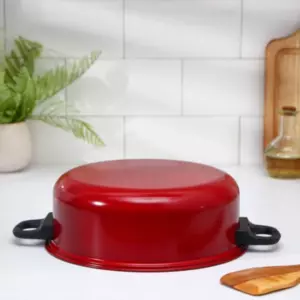 Компактные размеры (диаметр 26 см) позволяют хранить посуду даже в небольших шкафах. Красный цвет добавляет яркости интерьеру и помогает выделить кухонную утварь среди другой посуды.