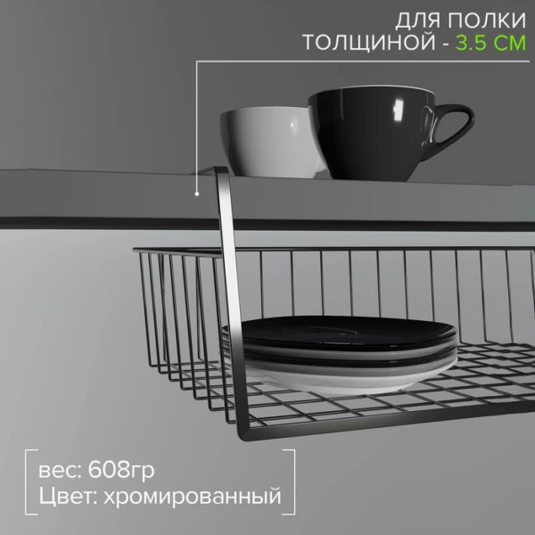 Сетчатая навесная корзинка от торговой марки Доляна предназначена для использования дополнительной возможности расширить имеющуюся полезную площадь на кухне.