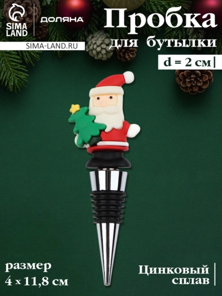 Пробка для бутылки новогодняя Доляна «Дед Мороз», 12 см