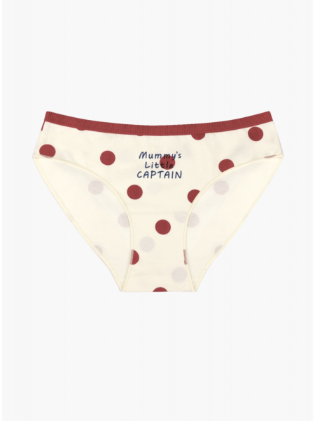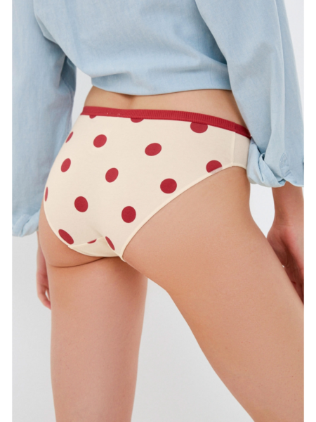 Женские трусы от торговой марки Индефини. Трусы-слипы из хлопка, бежевого цвета, в крупный горох, с принтом-надписями, на мягкой резинке, средней посадки. Состав: 95% хлопок 5% эластан_x000D_ _x000D_ Производитель: Indefini