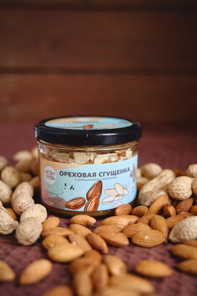 Состав: сироп топинамбура, арахис перетертый, лепестки миндаля, гималайская розовая соль.