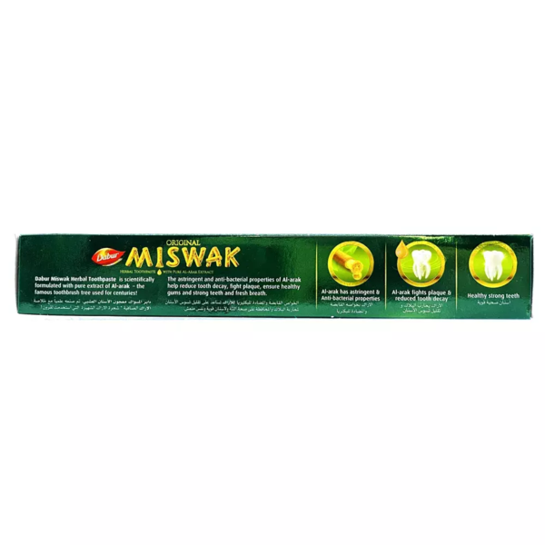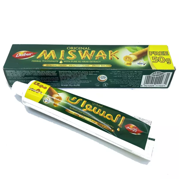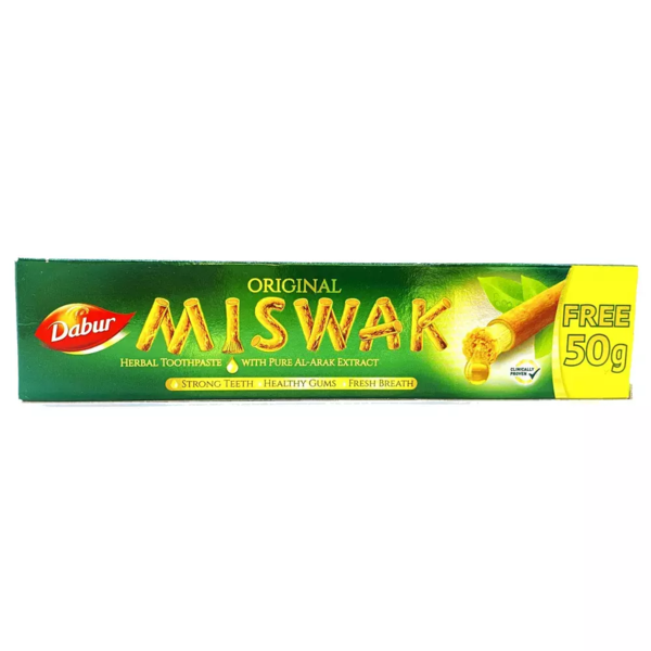Miswak (Salvadora persica) — редкое растение, медленно произрастающее на песчаных дюнах пустынь Африки и Южной Азии. Сопротивляясь жестким силам природы, оно вобрало в себя особые целебные свойства. Даже маленькая порция Miswak способна эффективно воздействовать на полость рта человека. Компания Dabur представляет Вам возможность использовать его уникальные свойства в виде зубной пасты Meswak.