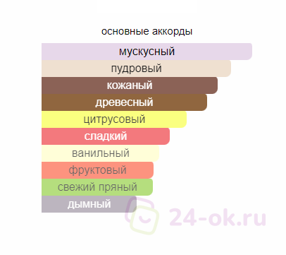 Базовые ноты: белый мускус, береза, ваниль, кашмеран, мускус