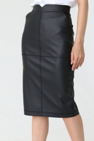 Юбка миди с декоративной отстрочкой по швам, притачным поясом, карманами в боковых швах, застежкой на молнию в среднем шве спинки и шлицей.
