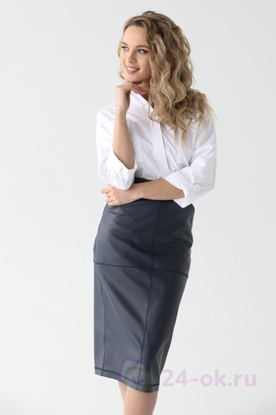 Юбка миди с декоративной отстрочкой по швам, притачным поясом, карманами в боковых швах, застежкой на молнию в среднем шве спинки и шлицей.