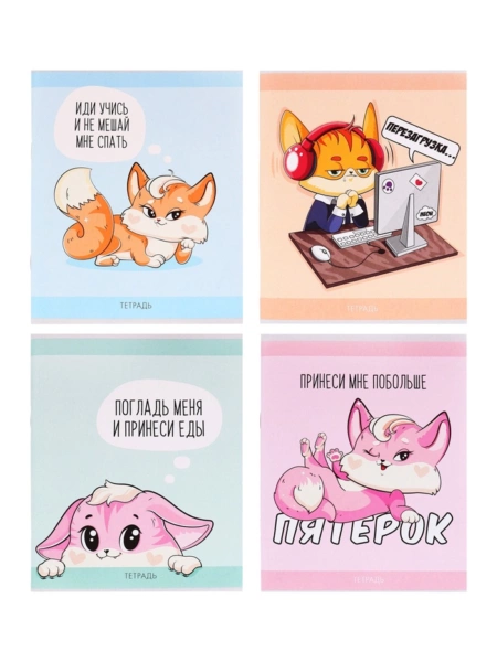 Цена за 10 шт. Тетрадь 48 листов в клетку, Calligrata «Лисички», серые листы, МИКС