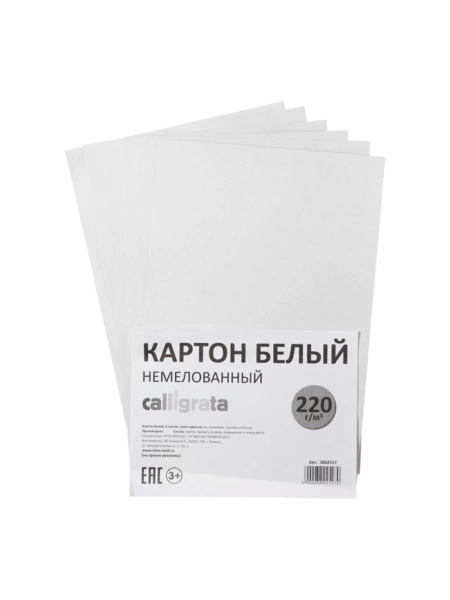 Цена за 10 шт. Картон белый А4, 6 листов, 220 г/м² Calligrata, немелованный, на скобе, ЭКОНОМ