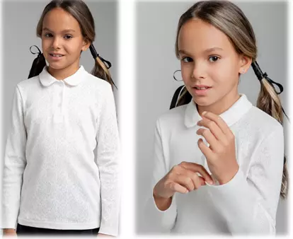 Описание: Лонгслив из перфорированного трикотажа Воротник отложной, линия втачивания закрыта тесьмой. Застёжка на пуговицы. Подгибка по низу изделия и рукава на 4см.